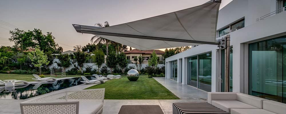 Τεντοσύστημα με ύφασμα που προστατεύει το χώρο μας απο την βροχή και τον ήλιο.